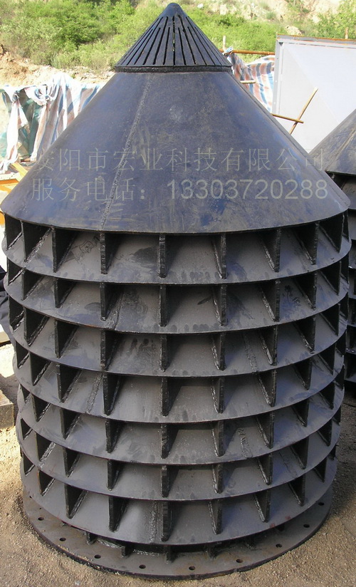 活性石灰豎窯在煅燒過程中,供風的大小和均勻程度,對石灰的活性度和燒結的生熟均勻至關重要,如果風不均勻就會出現(xiàn)偏燒,以至使過燒和燒不透現(xiàn)象發(fā)生,大大影響了活性石灰的質量。我公司研制的計算機仿真風帽吸取了國內外的經(jīng)驗,結合原燃料(石灰和焦炭)的質量和塊度的大小,用計算機作概率仿真設計風帽。概率仿真風帽是一種新型的供助燃風的一進風帽,助燃風從下口環(huán)形進入,然后通過筒壁若干個風孔出口進入爐膛,所鼓風經(jīng)風帽不同孔徑的風口和不同高度可使所送風壓風量概率分布到窯內整個截面。