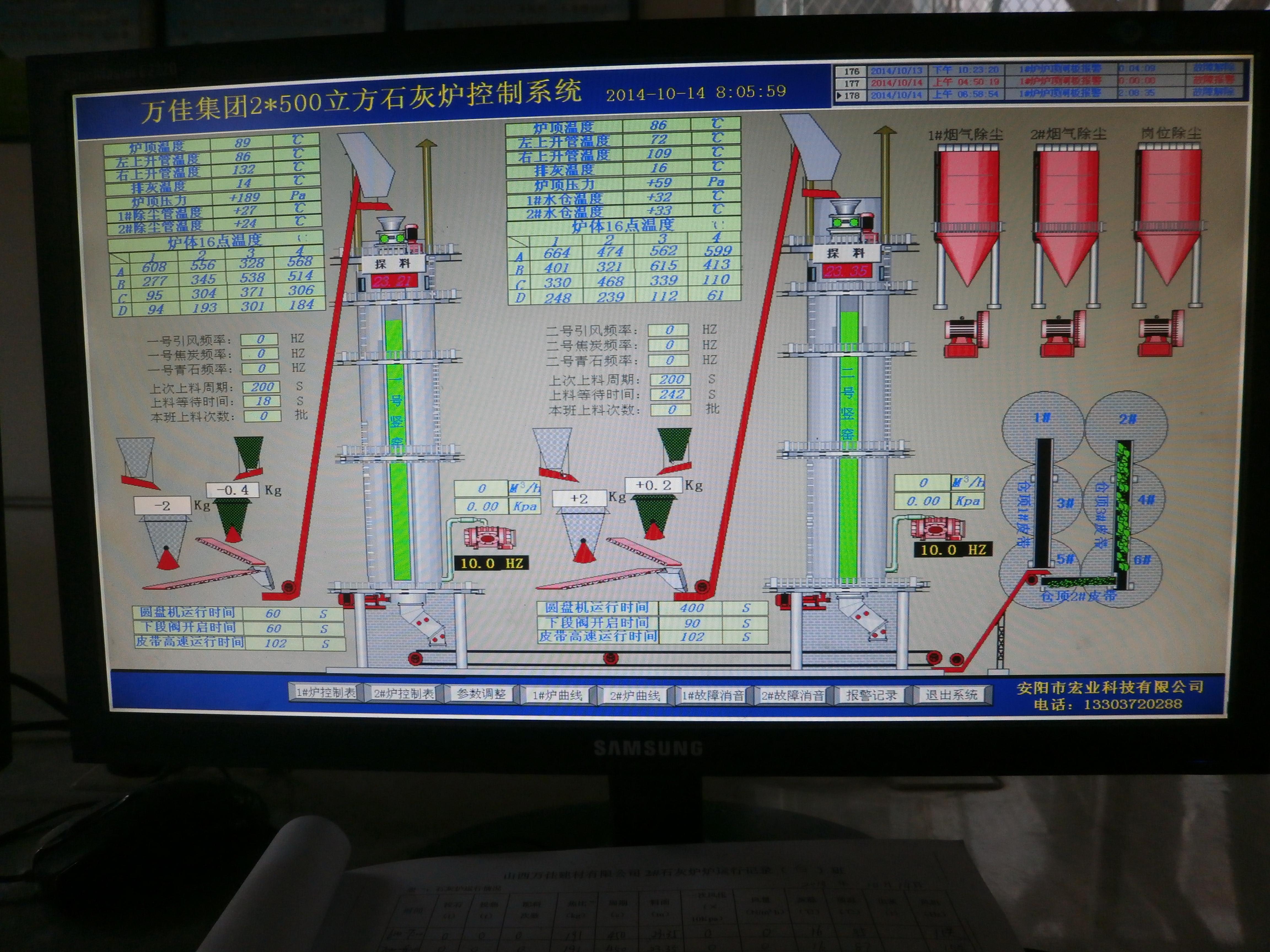 通過程序控制石灰窯設(shè)備(混配系統(tǒng)、卷?yè)P(yáng)機(jī)、旋轉(zhuǎn)布料器、兩段密封閥、出灰機(jī)等設(shè)備)完成原燃料自動(dòng)稱量與均勻混配、豎爐煅燒、成品自動(dòng)出灰等生產(chǎn)過程的全自動(dòng)控制,故障自動(dòng)檢測(cè)并實(shí)現(xiàn)中文語(yǔ)音報(bào)警。